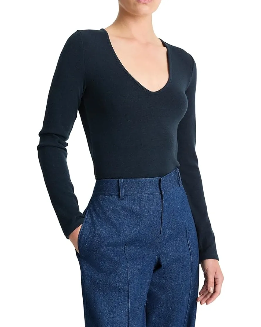- This cozy V-neck is a perfect elevated layering piece with long sleeves and a nice soft lightweight knit. Featuring a fitted silhouette in a pull-on style and a straight hemline. Dress up or down for a chic look to your effortless style!