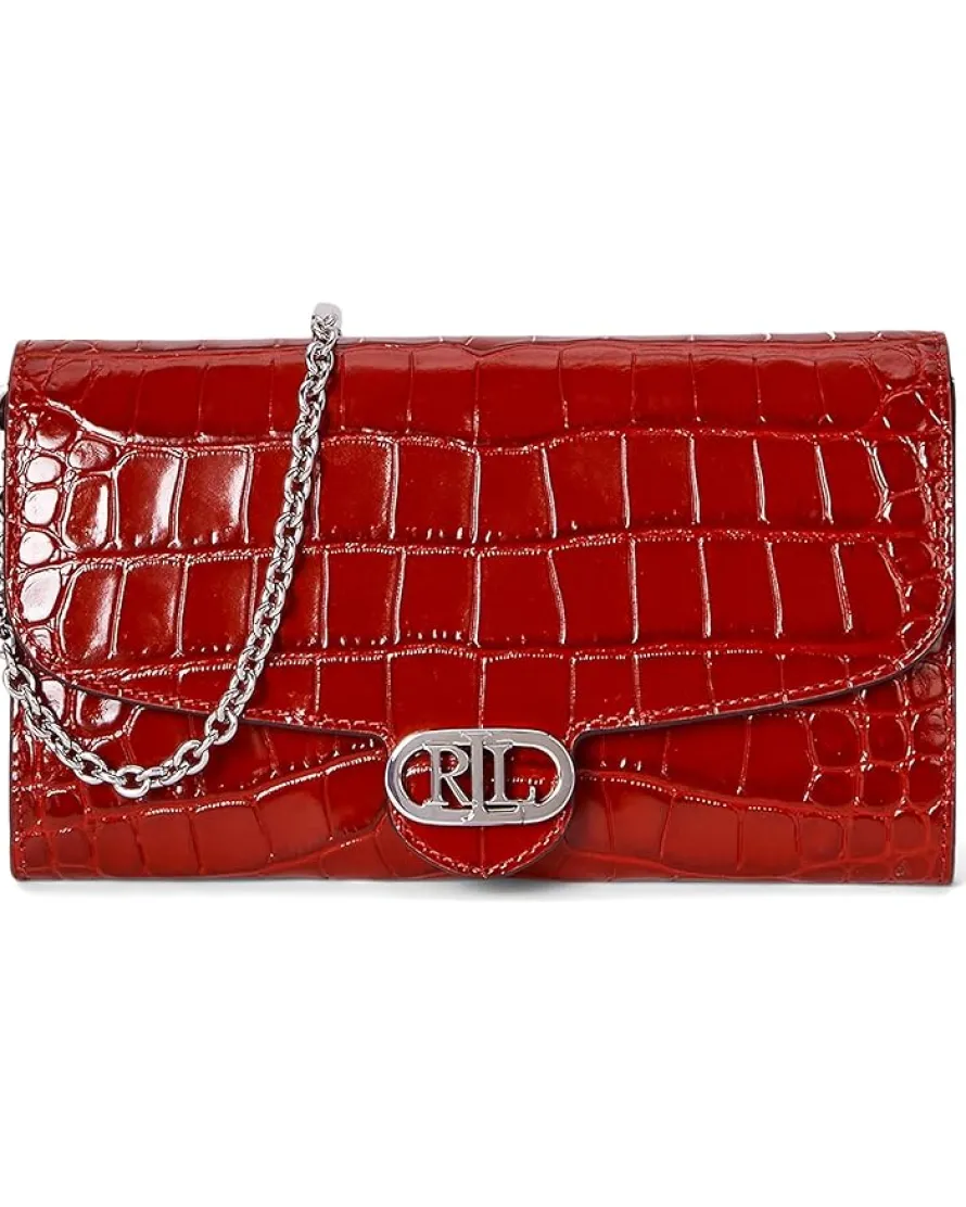 - Crafted with metallic crocodile-embossed leather and finished with a modern chain strap, the Lauren Ralph Lauren® Croc-embossed Medium Adair Crossbody combines the convenience of a crossbody bag with the essential storage of a wallet thanks to its compact silhouette and array of pockets. An oval-shaped LRL logo at the front provides a signature finish. This crossbody purse is designed with a magnetic snap closure and removable brass-finished chain crossbody strap.
