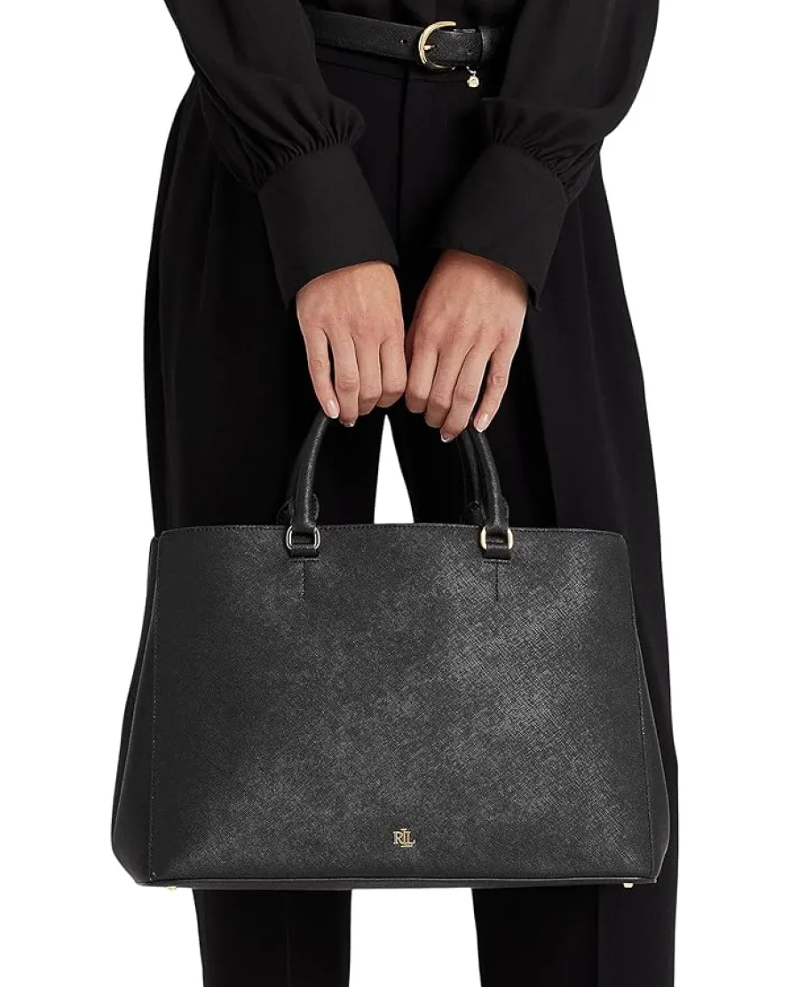- When running to meet the errands or simply walking to the office, keep your look chic by carrying the LAUREN Ralph Lauren® Crosshatch Leather Large Hanna Satchel.