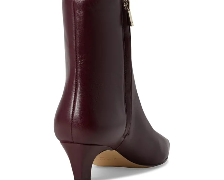 - Step into sleek sophistication wearing the Marc Fisher LTD™ Danai booties. Crafted with a smooth leather upper and chic PU lining, these ankle-high dress booties bring effortless polish to your wardrobe. The zippered side closure makes them easy to slip on and off, while the pointed toe and tapered kitten heel deliver that timeless, flattering silhouette every style lover craves. Balanced on a durable synthetic rubber outsole, Danai ensures both confidence and comfort with every stride. Designed with a contemporary square toe twist and sleek lines, they’re the perfect wardrobe staple, versatile enough for office hours, date nights, and everything in between.