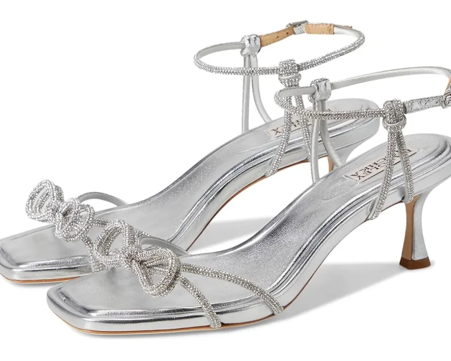 - The Badgley Mischka® Dandelion defines glamor at every step. This square toe pair features silk upper with rhinestone embellishments and buckle adjustable ankle strap closure.