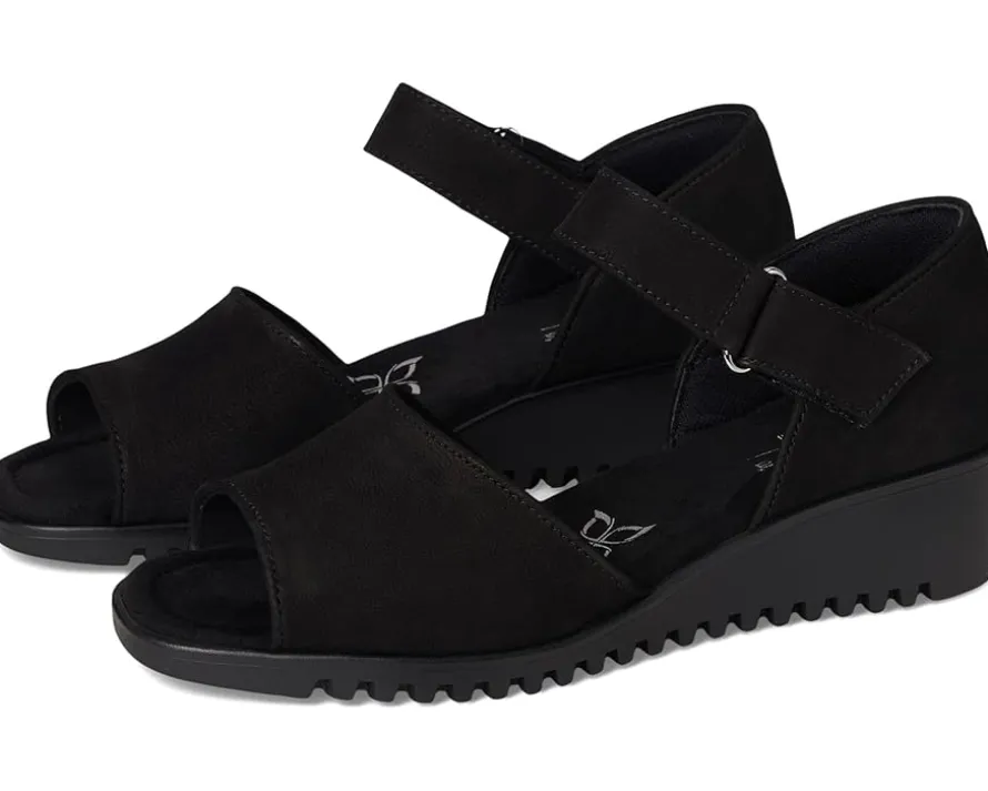 - The Comfortiva® Daniella sandals are two-piece sandals with lightweight wedge heels that work for different occasions. These heeled sandals are made of a foam insole, microsuede memory foam sock lining, and faux suede lining. The leather upper features a hook-and-loop strap for a secure fit.
