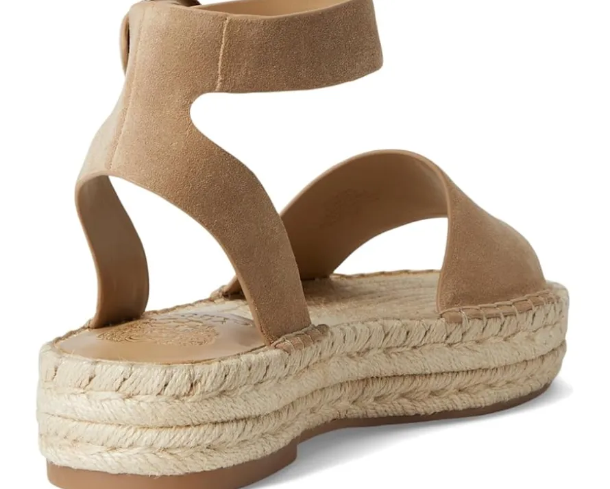 - A braided jute platform and a chic leather upper give these Vince Camuto® Darna Espadrille Platform Sandals a marvelous look. With a platform heel, the footwear features buckled ankle strap and rounded open toe silhouette.