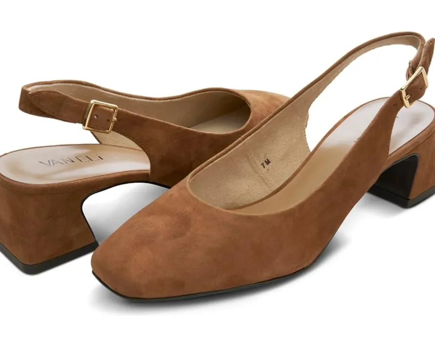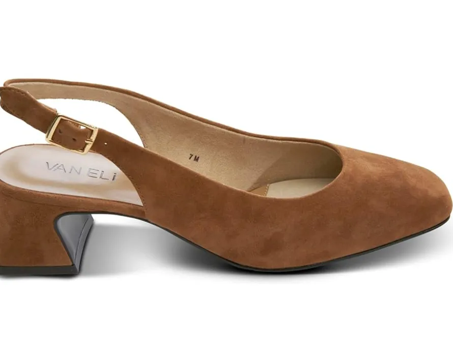 - Step towards modern distinction wearing the Vaneli® Darsy Flats. The low-top footwear features suede upper with chunky block heel and buckle adjustable slingback strap closure.