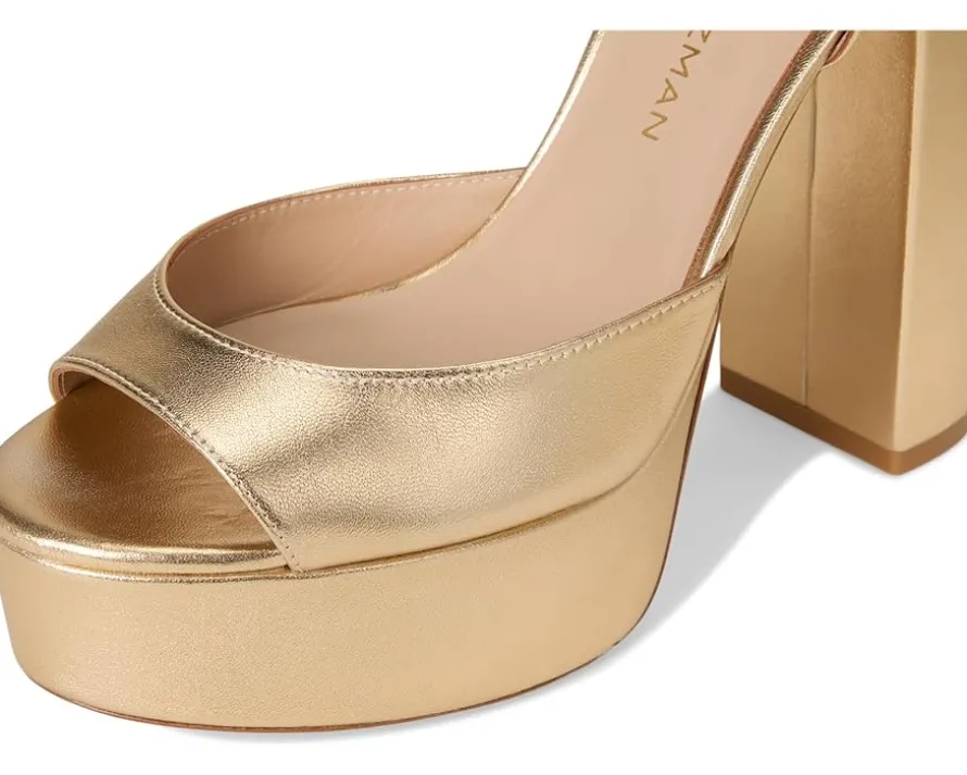 - The Stuart Weitzman® Dayna Boost Platform makes a statement with its super chunky platform and soaring block heel. Designed with a front platform, this sandal offers scene-stealing height while maintaining a comfortable slope. The buckle adjustable ankle strap ensures a secure fit, while the smooth leather upper adds a luxurious touch.