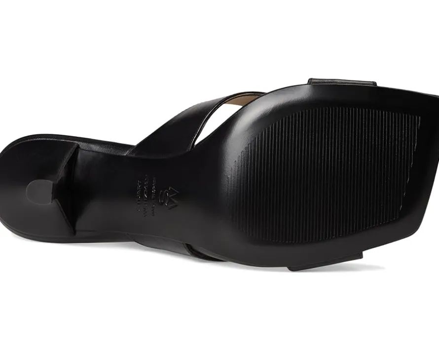 - Encourage confidence and grace with every step wearing the Stuart Weitzman® Dayna Slide 75. Crafted from denim upper, leather lining, and insole, this pair of sandals features open square toe, crisscross strap detailing on the vamp, stiletto heel, and slip-on style.