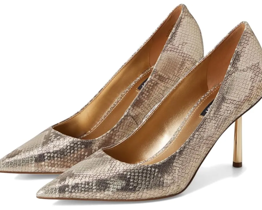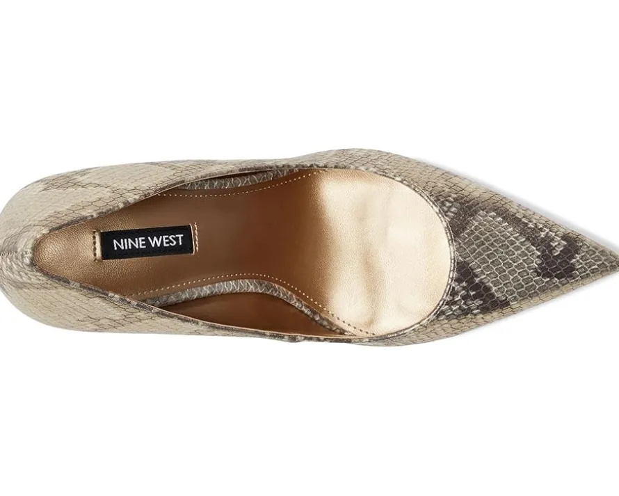 - Elevate your wardrobe in the Nine West® Deonne dress pumps. Crafted from faux leather upper, man-made lining, it features a pointy toe, sky-high stiletto heel and slip-on silhouette. It comes with brand detailing on the footbed.