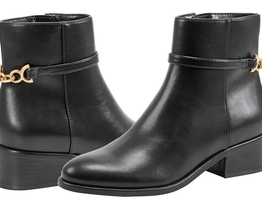 - Inside zipper closure with a round toe silhouette.