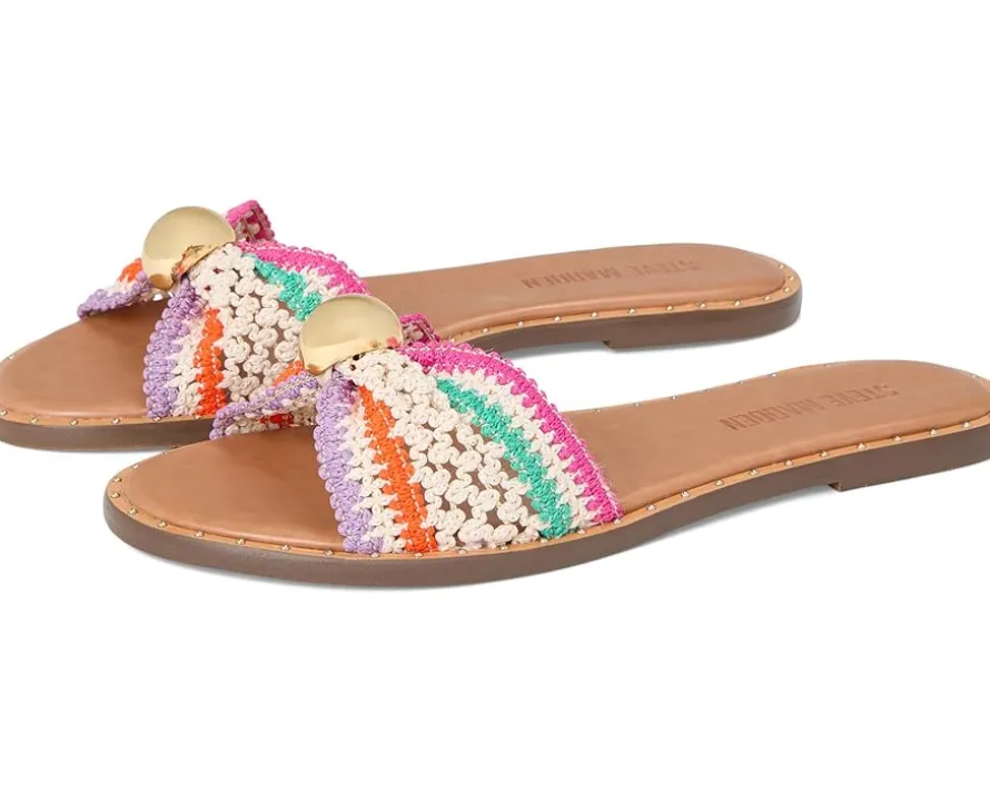 - The Steve Madden® Dipsy slides are the epitome of effortless warm-weather style. Their unique knot detail and gold accent add a touch of sophistication, while the slip-on design makes them easy to wear. These flat sandals are made of a polypropylene upper, rubber insole, and faux leather lining. Whether you’re strolling along the beach or running errands around town, these slide sandals will keep you looking and feeling your best.