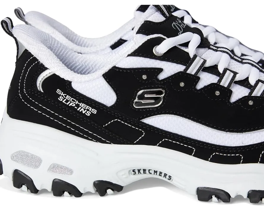 - The SKECHERS® D’Lites Hands Free Slip-INS shoes are comfortable and cushioned sneakers that feature a rubber upper, making them a great choice for your outdoor rides and adventures. They are made of an Air-Cooled memory foam insole that provides cushioned comfort. The lace-up closure of these shoes ensures a secure fit while the pull tabs at the front and back offer easy wear.