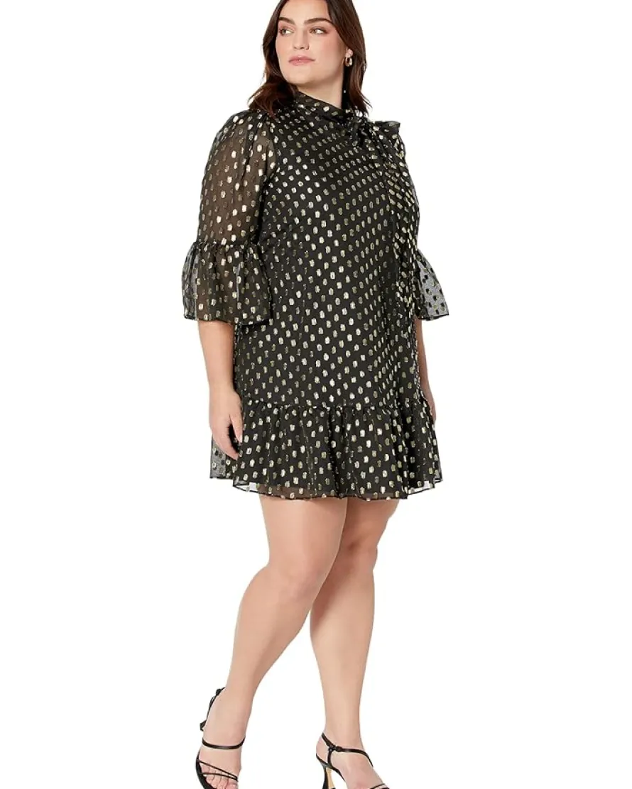 - A chic mini-length Calvin Klein® Dot Dress with Bell Sleeves, which never fails to look your best.