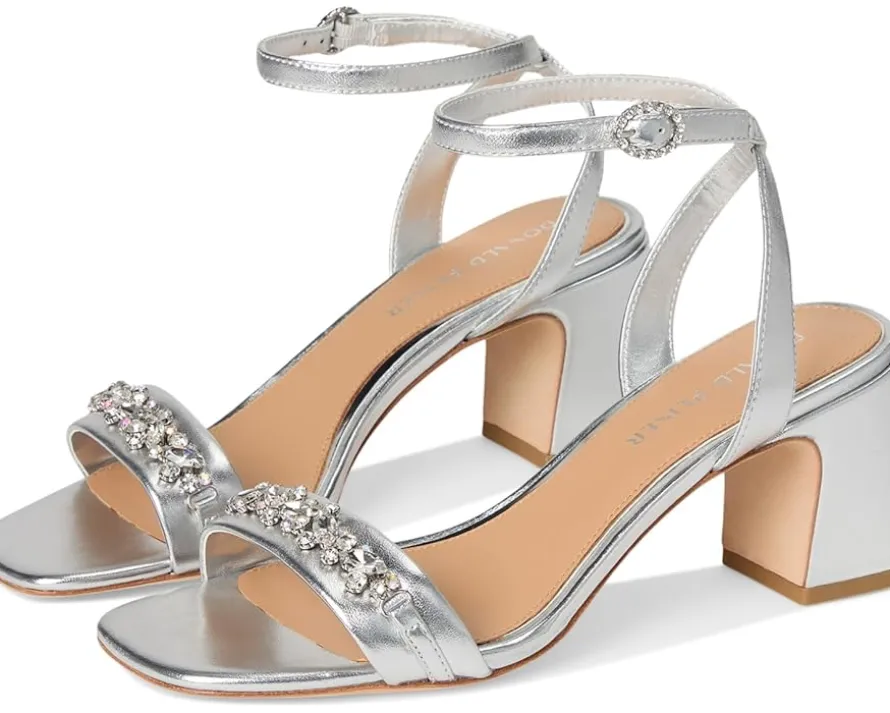 - Designed to dazzle, the Donald Pliner® DOYENNE sandal features crystal and pearl embellishments with an oversized buckle for standout shine. A sculpted heel and square toe design elevate the silhouette, making it perfect for special occasions. Made from a single-strap leather upper, polyurethane lining, memory foam padded insole, and leather outsole.