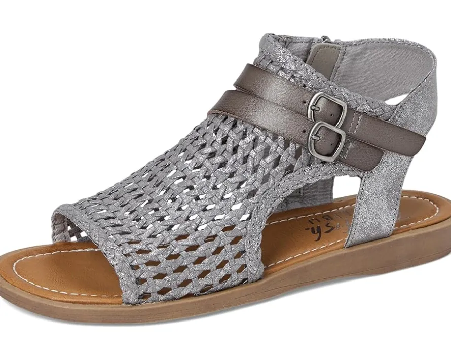 - Step into a dream with this sandal from Blowfish® Malibu. The Dream features a faux-suede woven upper with decorative strap and buckle details with zipper entry for easy on/off. Crafted from polyurethane lining, and foam insole, this pair of sandals features open round toe, low stacked heel, and brand detailing on the footbed.