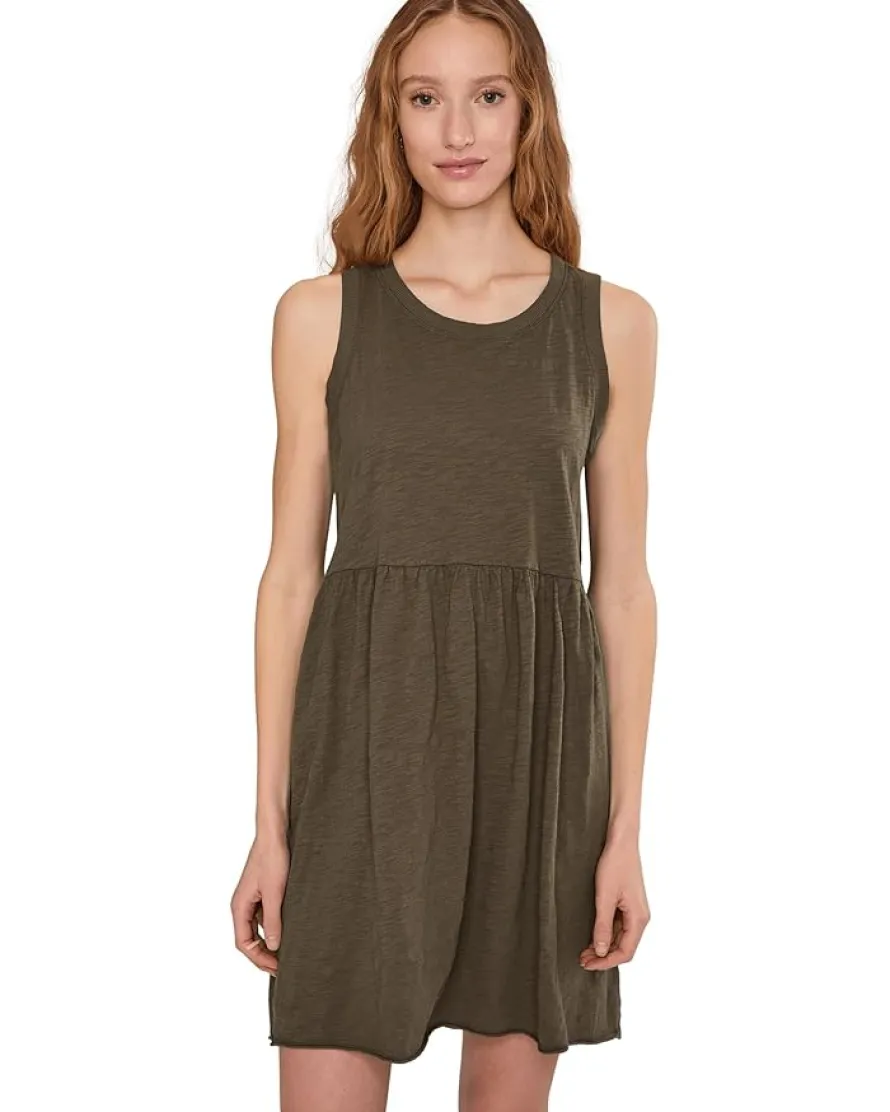 - Exude a stylish and sophisticated charm wearing the Mod-o-doc™ Drop Shirred Waist Tank Dress. The pull-on style dress features a crew neck, a sleeveless design, shirred waist, and an above-the-knee silhouette.