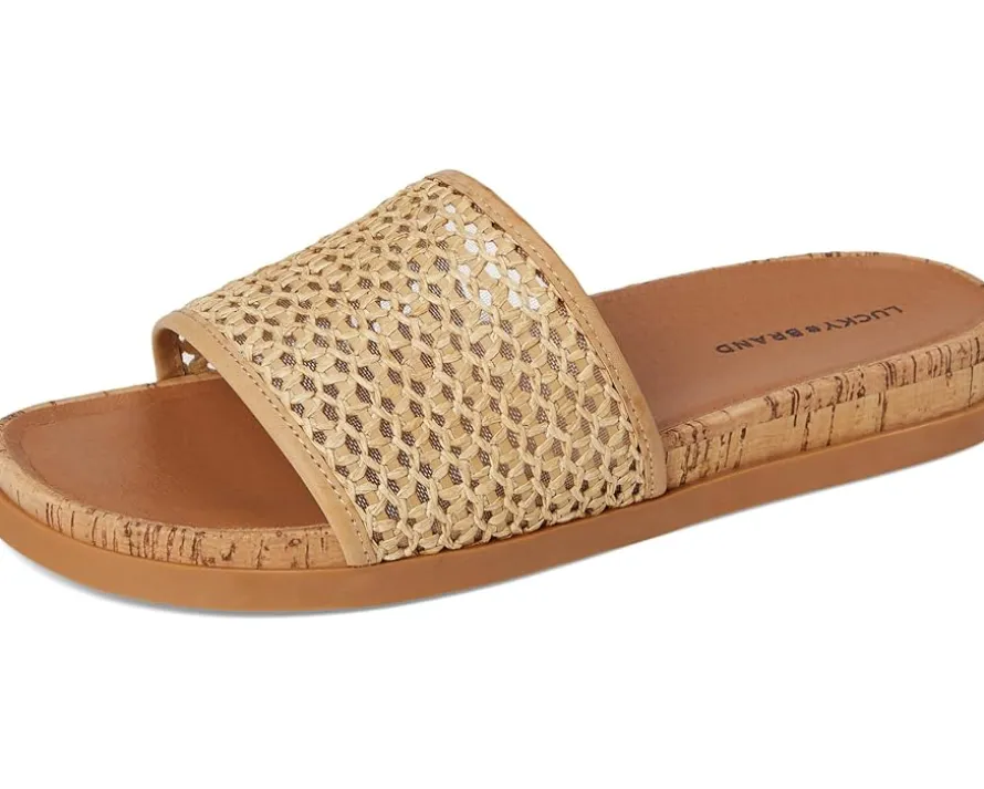 - Pool slides, beach slides, you name it slides! The Lucky Brand® Dylina Woven Band Sandals are bright and fun for all summer long. Easy to slip on and off, these slide sandals are made of a woven jute upper and cushioned rubber insole. Slip into effortless comfort and style with these slip-on sandals.