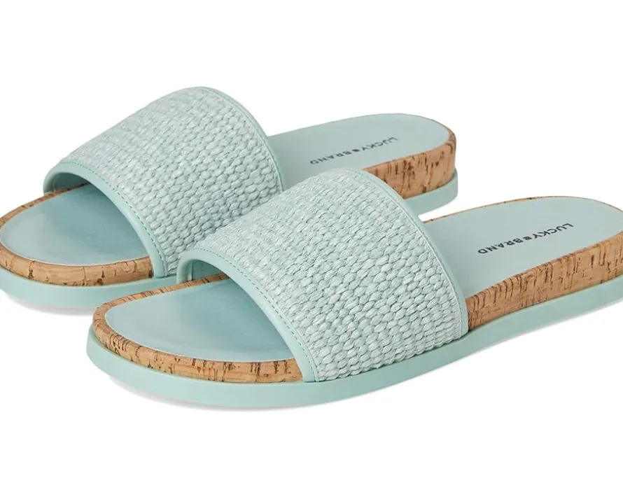 - Pool slides, beach slides, you name it slides! The Lucky Brand® Dylina Woven Band Sandals are bright and fun for all summer long. Easy to slip on and off, these slide sandals are made of a woven jute upper and cushioned rubber insole. Slip into effortless comfort and style with these slip-on sandals.