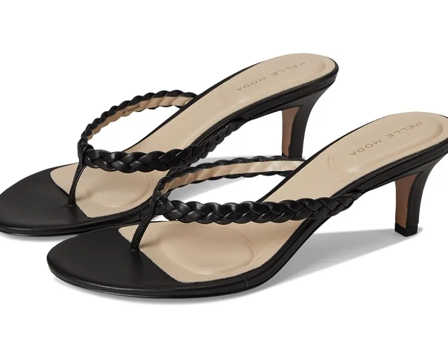- The Pelle Moda® Earlen Thong Sandal is a simple braided thong with a kitten heel, great for summer parties. The open round-toe heels feature a leather upper, faux leather lining, and a padded leather insole.