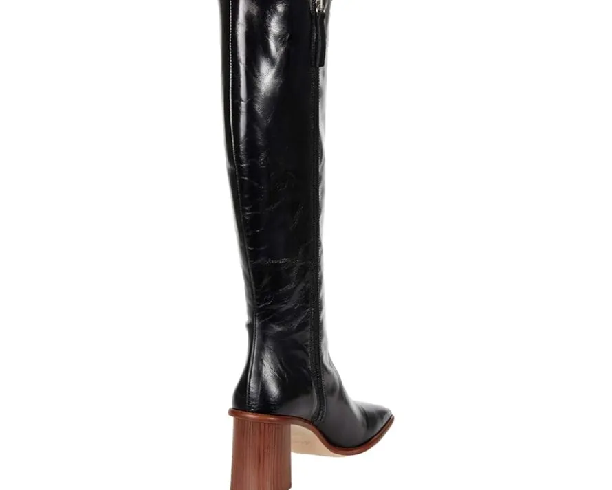 - The ALOHAS® East boots showcase a leather upper, pull-on construction with side zip closure, square-toe silhouette, and block heel.