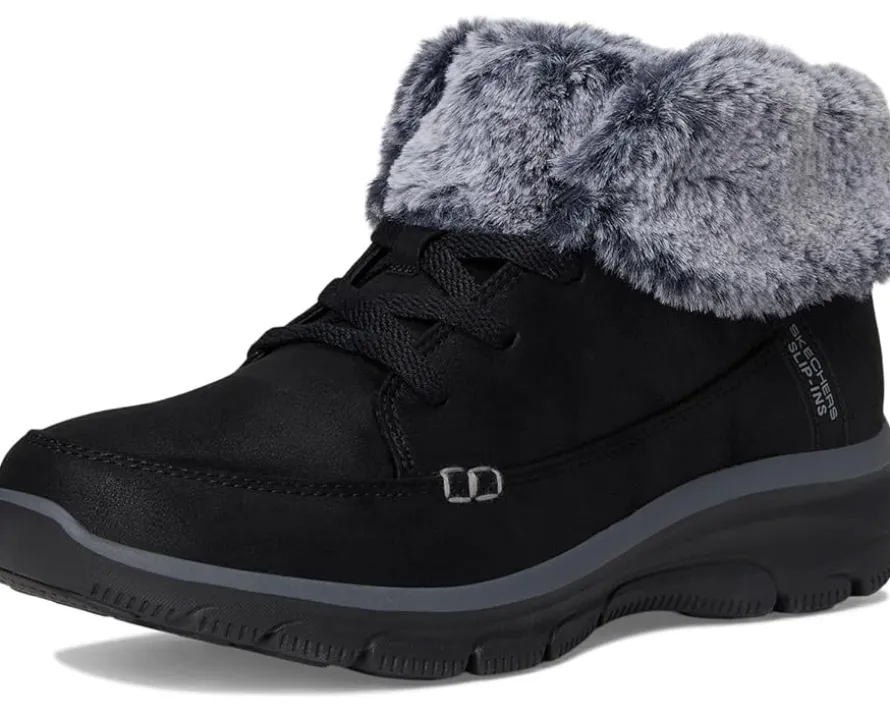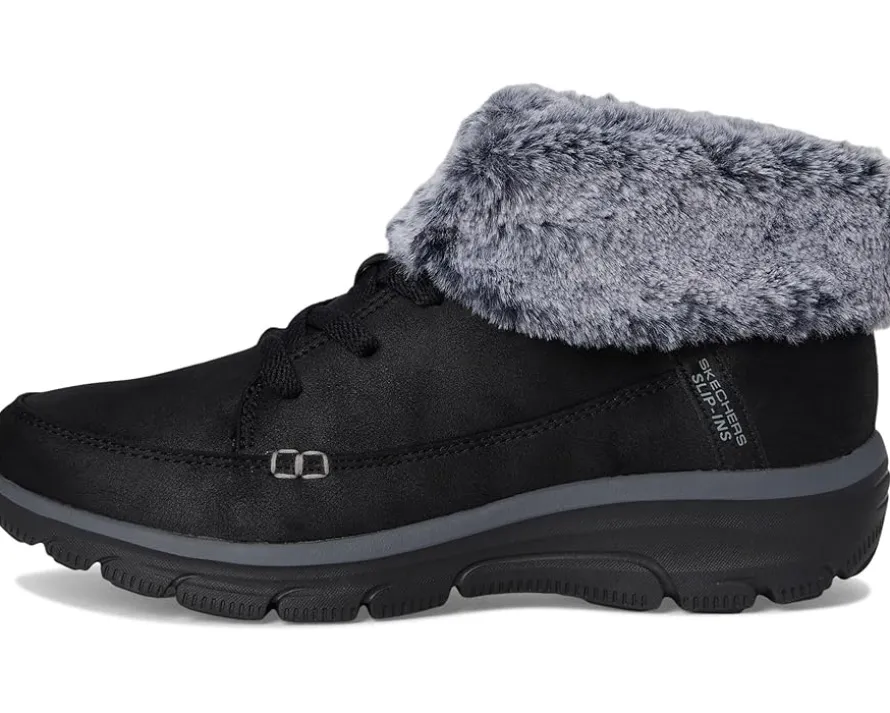 - Simply step into the season with effortless cozy comfort wearing the SKECHERS® Easy Going – Chili Standards Hands Free Slip-ins boots. Designed with an exclusive Heel Pillow™, these ankle-high boots feature a 3M® Scotchgard®-treated vegan leather upper with faux fur trim and lining and a cushioned Skechers Air-Cooled Memory Foam® insole. Their relaxed fit offers a roomy comfort fit at the toe and forefoot. Crafted with 100% vegan materials, these lace-up boots resist water and stains.