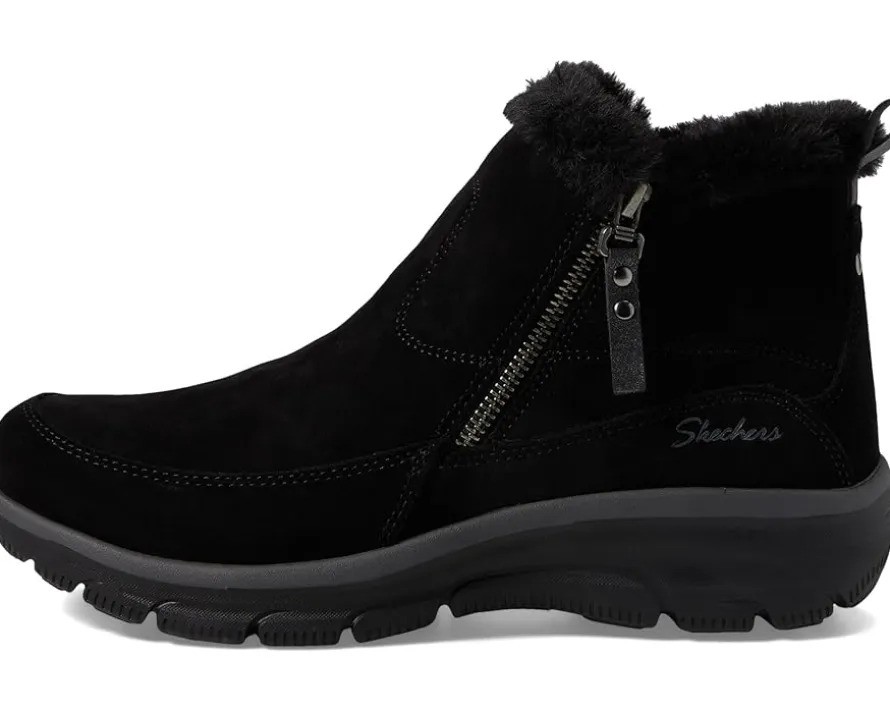 - Enjoy cozy comfort that lasts throughout the day wearing SKECHERS® Easy Going – Cool Zip Boots. Treated with 3m® scotchgard® to resist water and stains, the boots maintainq uality for a long time. These are crafted with a suede upper, textile or fabric lining, and skechers air-cooled memory foam® cushioned insole. The side zipper makes it easy to adjust the boots.
