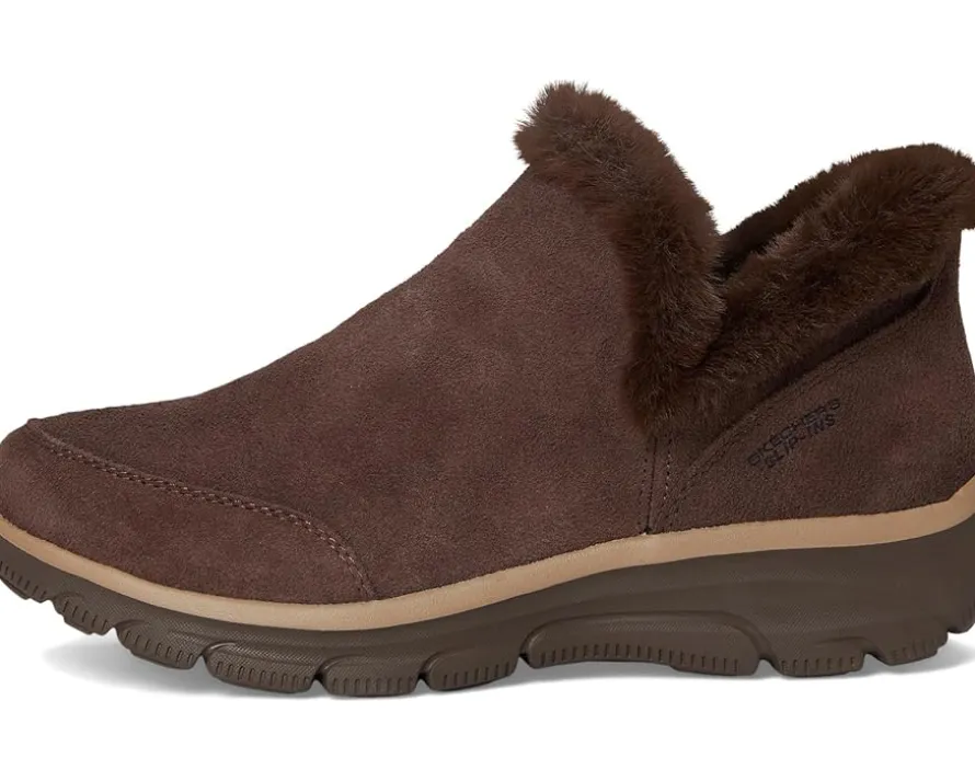 - Get warm comfort and smart versatile style instantly with the SKECHERS® Easy Going – Fall Feeling Hands Free Slip-ins. Designed with a Heel Pillow®, this slip-on bootie features a 3M® Scotchgard® treated suede upper, plush faux fur trim & lining, and a cushioned Skechers® Air-Cooled Memory Foam® insole. The Skechers® Hands Free Slip-ins® allow for an easy fit, while the Relaxed Fit® offers a roomy comfort fit at toe and forefoot.
