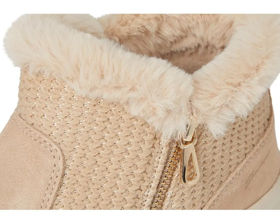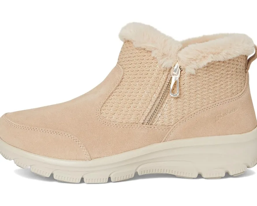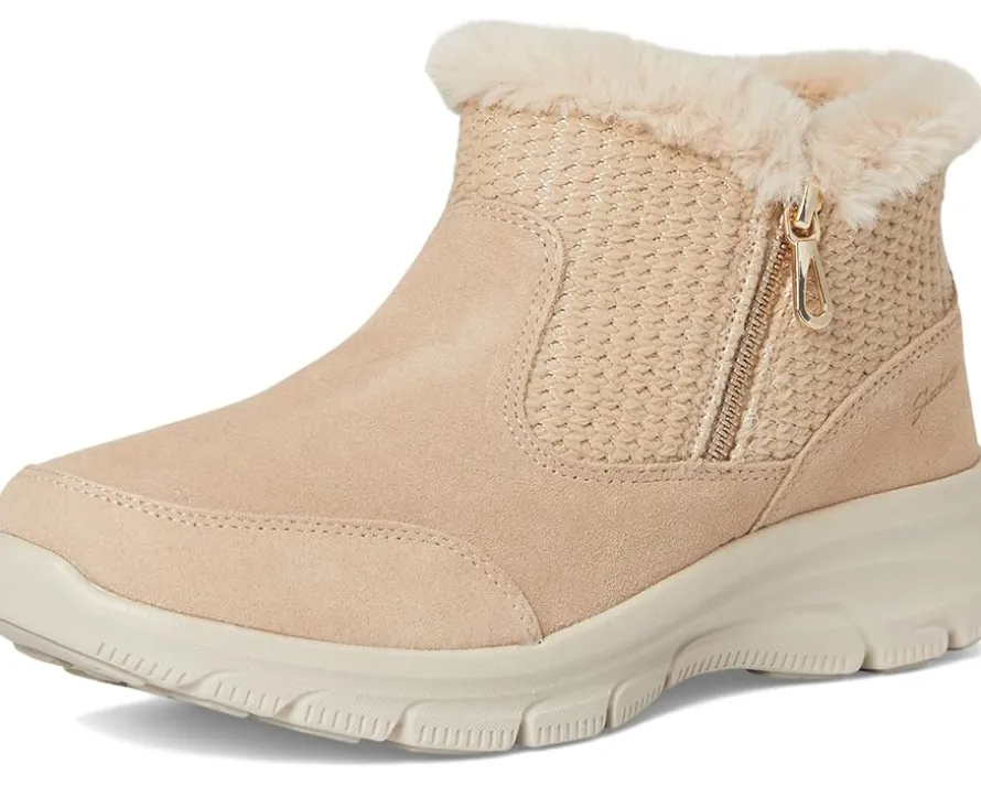 - Style that feels like a hug, SKECHERS® Easy Going – Gentle Fall. Designed to keep you warm and on-trend, this ankle-high beauty features a soft suede and sweater knit upper accented with a plush faux-fur trim that screams cozy season goals. The zippered side closure makes slipping in and out a breeze, while the moc toe and wedge heel add just the right touch of laid-back sophistication. Inside, the SKECHERS Air-Cooled Memory Foam® cushioned insole hugs your feet in unmatched comfort, and the durable rubber outsole ensures grip with every step.
