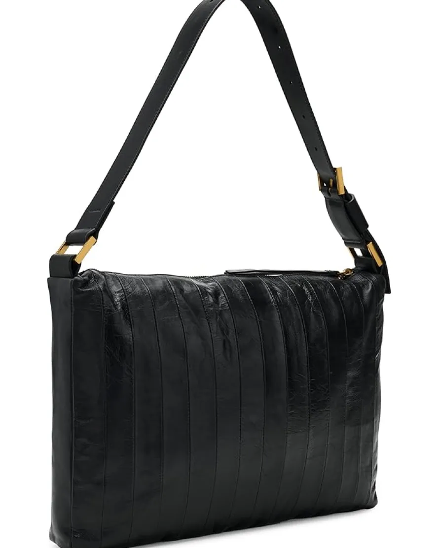 - Discover the AllSaints™ Edbury Panel Shoulder Bag, expertly crafted to elevate your style from street to chic effortlessly. Made from premium cow leather, its quilted finish brings that luxe texture you can feel, while the brand’s signature metal hardware adds an edgy, iconic touch. Designed with intention, the Edbury features one spacious compartment and two smart pockets, giving you effortless organization without compromising style. The secure zipper closure keeps your essentials safe as you move through your day.