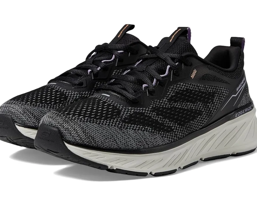 - Machine washable and comfortable, the SKECHERS® Edgeride Power Flow shoes feature Skechers Air-Cooled Memory Foam® insole that cushions each step. The engineered knit mesh upper of these shoes features a lace-up closure, synthetic overlays, and pull loops. Made with at least 20% recycled content by weight, these lace-up sneakers are an ideal choice for your everyday runs and workout sessions.