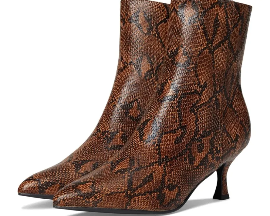 - Say hello to MIA™ Ediva-S, the snake print vegan leather bootie that’s anything but shy. With a fierce pointed toe design and a comfy kitten heel, she’s your go-to for adding a bold twist to any fall outfit. Statement-making is an understatement-Ediva brings the attitude, the style, and all the compliments. It has a faux leather upper, lining, and foam insole.
