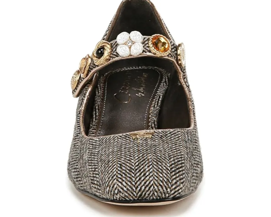 - Meet the Circus by Sam Edelman® Elaine: a chic block-heel Mary Jane adorned with vintage-inspired button details. The square toe pair features fabric/synthetic upper construction with synthetic lining and insole.