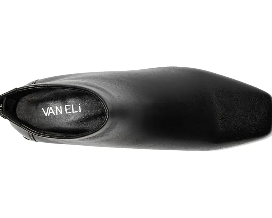 - Crafted from smooth leather upper, the Vaneli® Elide ankle boot features a square toe and a low stacked heel for subtle lift. The zippered back closure ensures a secure, personalized fit, while the padded rubber insole offers cushioned support.