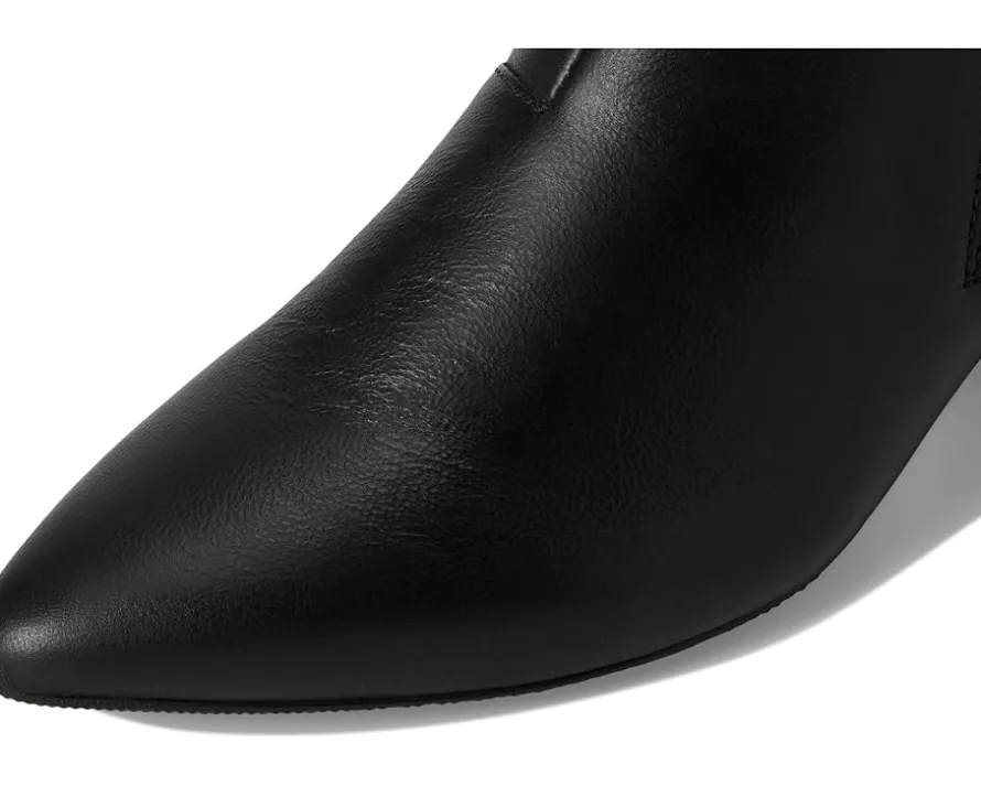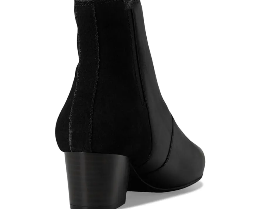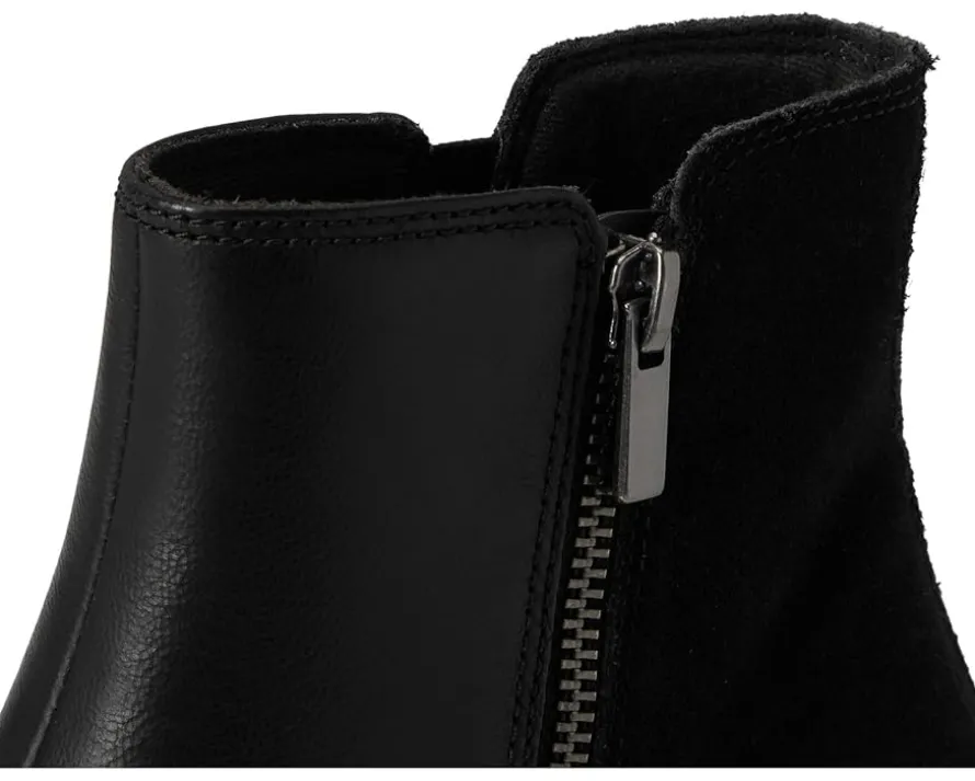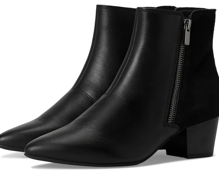 - Exude sleek sophistication wearing the Clarks™ Ellanie Vibe Boots, designed in a pointed toe silhouette with a solid block heel. The ankle-high boots are crafted with a black leather & suede upper, mesh lining, and a 5mm Ultimate Comfort foam footbed that delivers lasting cushioning. The side zipper closure ensures a secure fit.