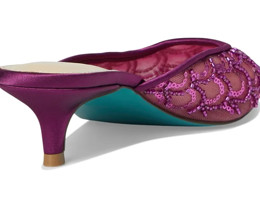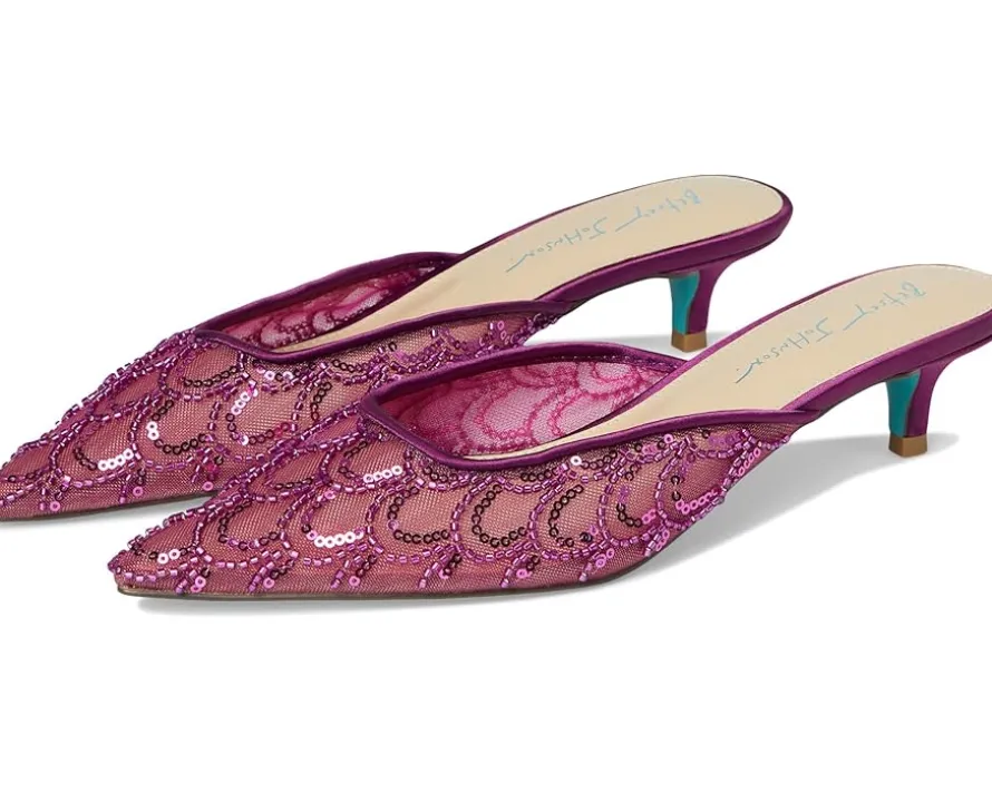 - The Blue™ by Betsey Johnson Ellis pumps are glam and chic. Their mesh upper features sequin detailing allover for a stylish appeal. They are made of a polyurethane insole and lining. These heeled sandals are easy to slip on and off. Make any outfit sparkle with these slip-on pumps.