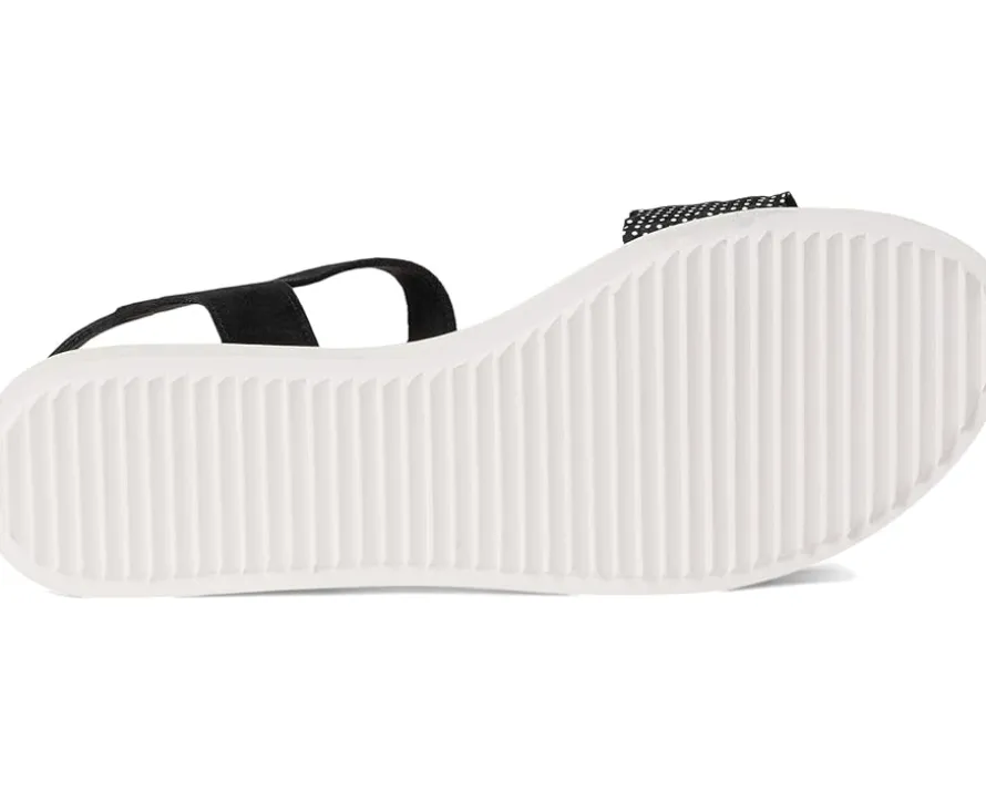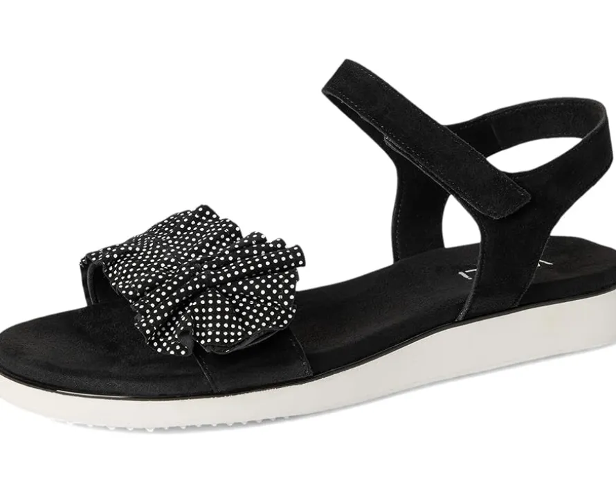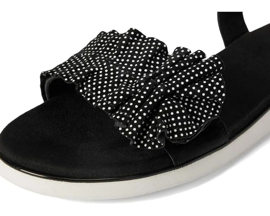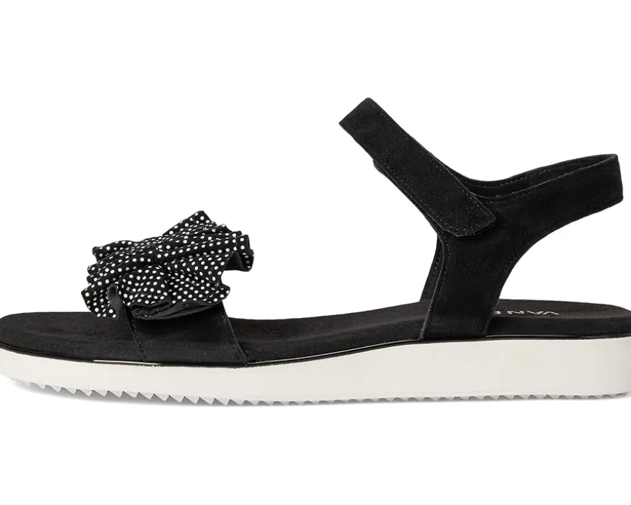 - The Vaneli® Elsbet sandal features ruffle-strap detailing and a hook-and-loop closure, ensuring a secure and adjustable fit. The hidden elastic insert under the buckle adds extra comfort, while the padded insole provides cushioning for all-day wear.
