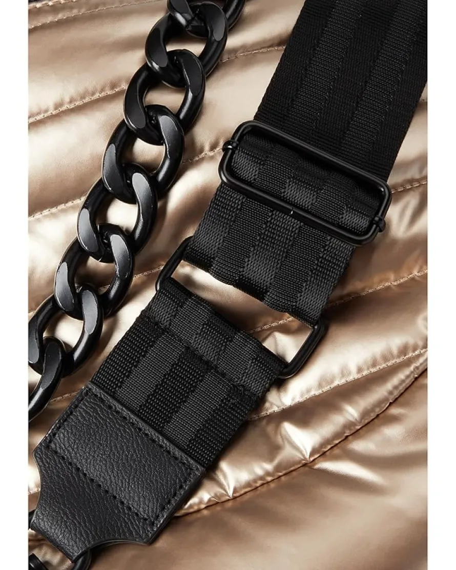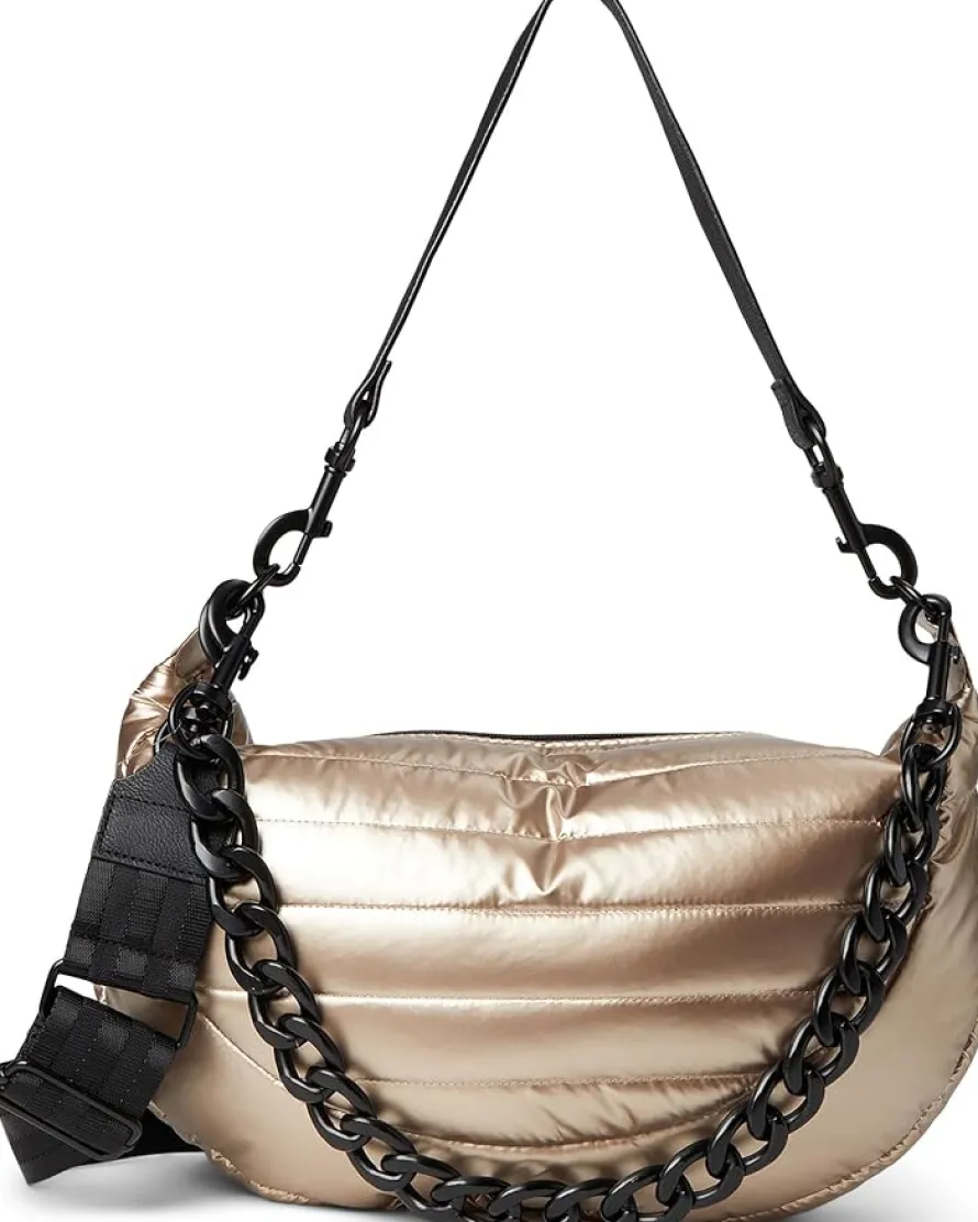 - The water-resistant THINK ROYLN® Elton Hobo perfectly defines convenience and chic functionality. It features a signature quilting design with one main compartment and zippered closure. With chain hardware detailing, the bag has shoulder strap and adjustable/detachable crossbody strap for added ease.