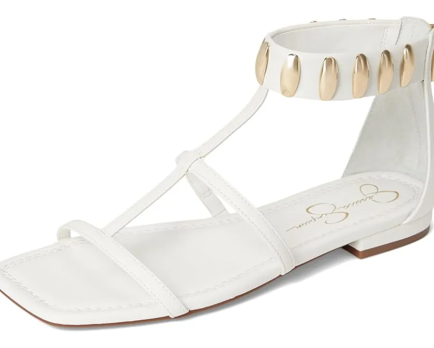 - Crafted to lift your style in the most comfortable way! The Jessica Simpson™ Elusta Studded T-strap Sandals feature faux leather upper with a back zipper for easy entry. An open square toe shape accentuates the look even more.