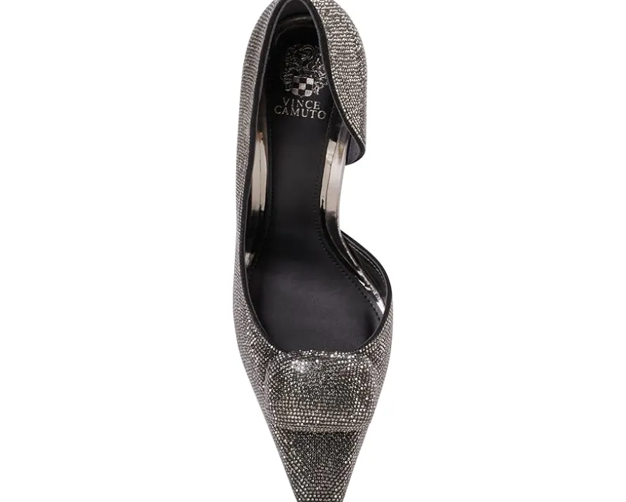 - Elevate your style donning the Vince Camuto® Emelias Pumps! Made with a luxurious polyester upper and lining, these glitter-embellished stiletto pumps are perfect for adding some sparkle to any outfit. The cushioned insole ensures all-day comfort, while the snip toe design and sexy stiletto heels add a touch of elegance to your look.