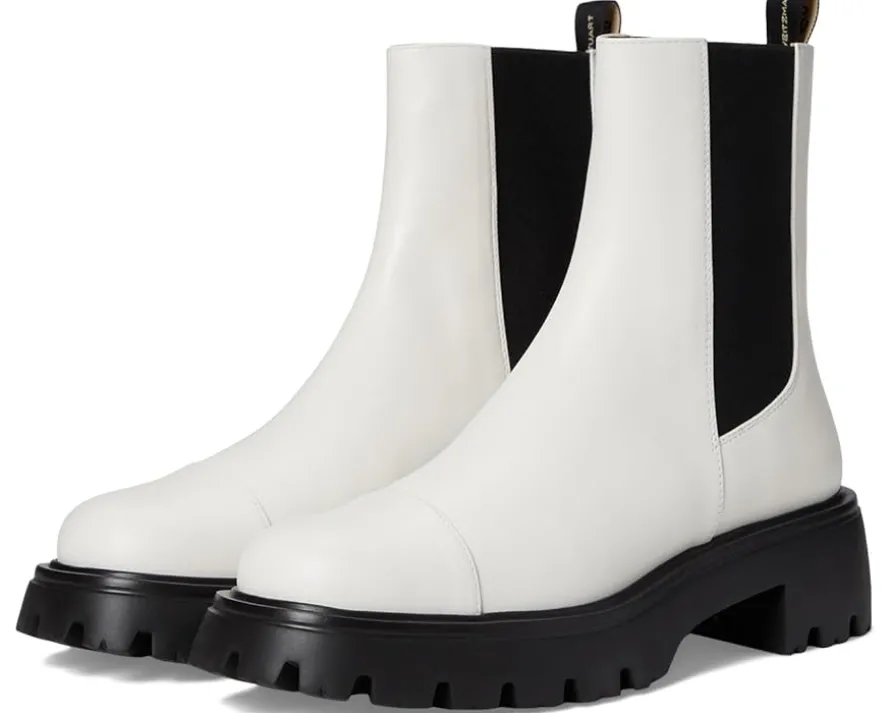 - Treat your feet to the luxurious Stuart Weitzman® Emerson Chelsea Booties. Constructed with premium leather upper and lining, these booties exude quality and style. The leather insole offers a cushioned feel with every step, while the pull-on style and elasticized side goring make them easy to wear. Equipped with a lugged bottom for durability and traction, these ankle-high booties are a versatile option for any occasion.