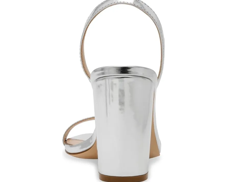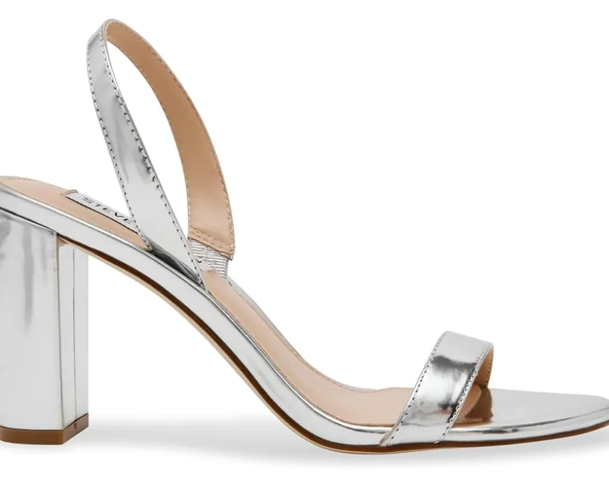 - Two slender straps secure the Steve Madden® Emilie to its block heel for a minimalist take on the classic strappy high-heel sandal. With an easy pull-on style, the footwear exudes a modern open toe silhouette and slingback strap closure.