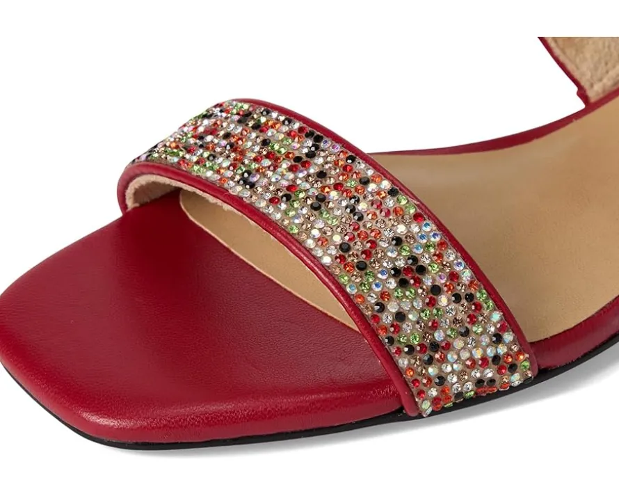 - The Vaneli® Emmey sandals feature multi-rhinestone studded straps, adding a touch of sparkle to any outfit. The buckle closure with a hidden elastic insert ensures a secure and flexible fit, while the padded leather insole provides all-day comfort.