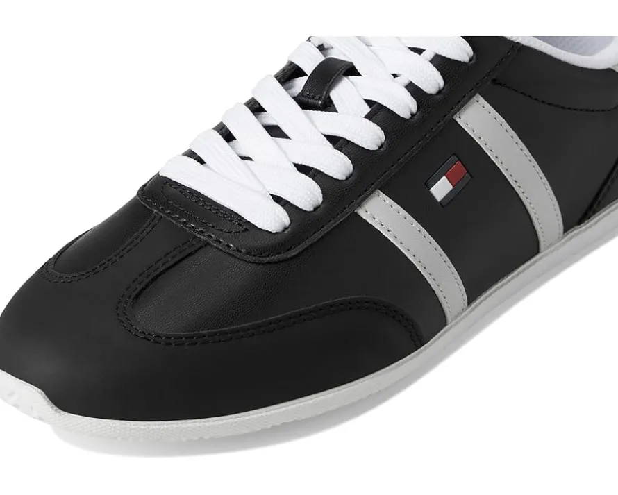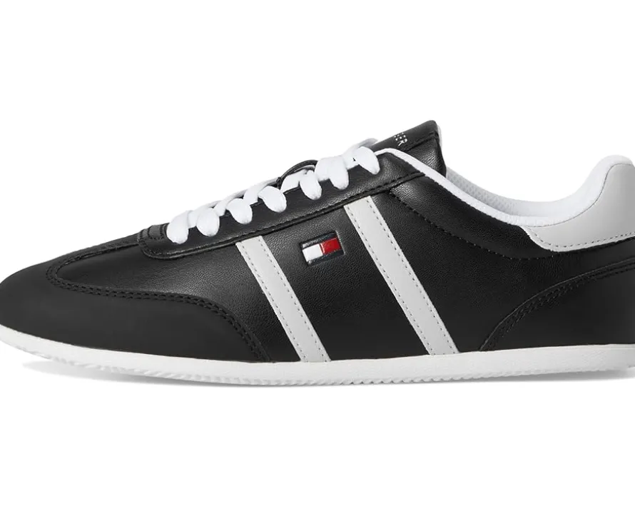 - The Tommy Hilfiger® Eryanne sneakers are stylish yet comfortable. The branded signature logo on the side adds a pop of sporty glamour to any look. These lace-up sneakers are made of a leather insole and polyester lining. Match your casual looks and fashionable outfits with these leather sneakers.