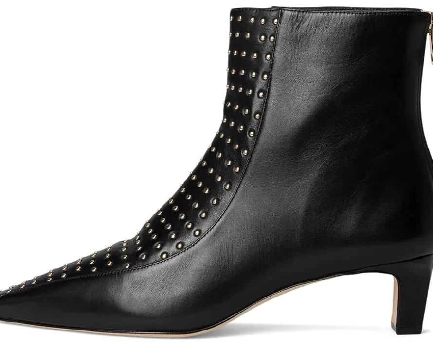 - Star-studded. This Bernardo® Esme Studs short bootie offers a sophisticated take on bohemian punk with its pin-stud details and rock n’ roll kitten heel -perfect for kicking around town. Made from leather upper, lining, and insole, these ankle-high boots are sure to make a statement wherever you go!