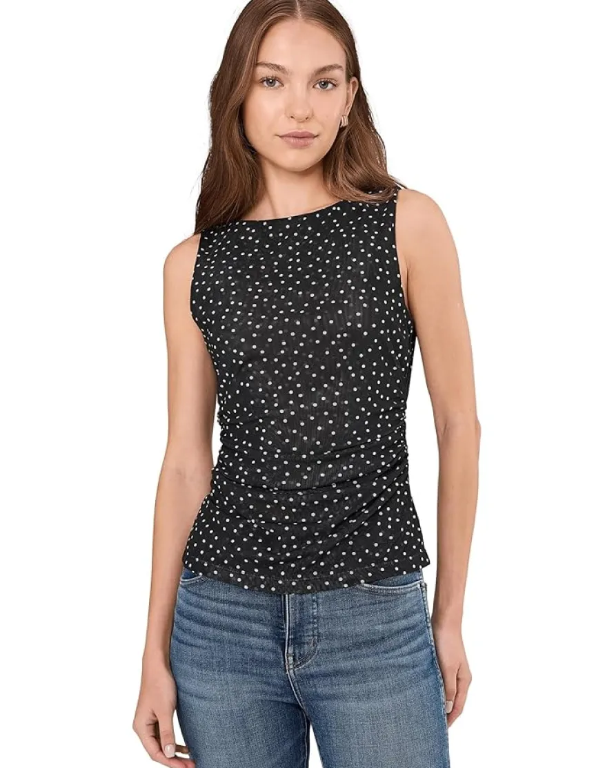 - Crafted from a soft, stretchy double-layer mesh, the Madewell® Esme Top – Mesh features a sleeveless silhouette and jewel neckline that transitions effortlessly from day to night. Its subtly ruched finish and breathable fabric offer both polish and comfort.