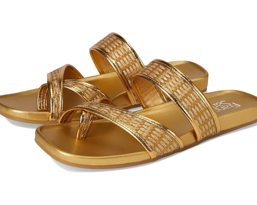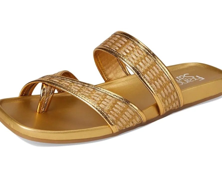 - Where comfort meets chic styling the Franco Sarto® Estella. Featuring a chic fabric upper and a soft PU lining, this sandal is as comfortable as it is stylish. The faux leather insole offers a smooth feel, while the synthetic rubber outsole ensures durability with every step. Its slip-on silhouette, accented by a modern toe loop and a flattering square toe, adds a refined touch to any look.