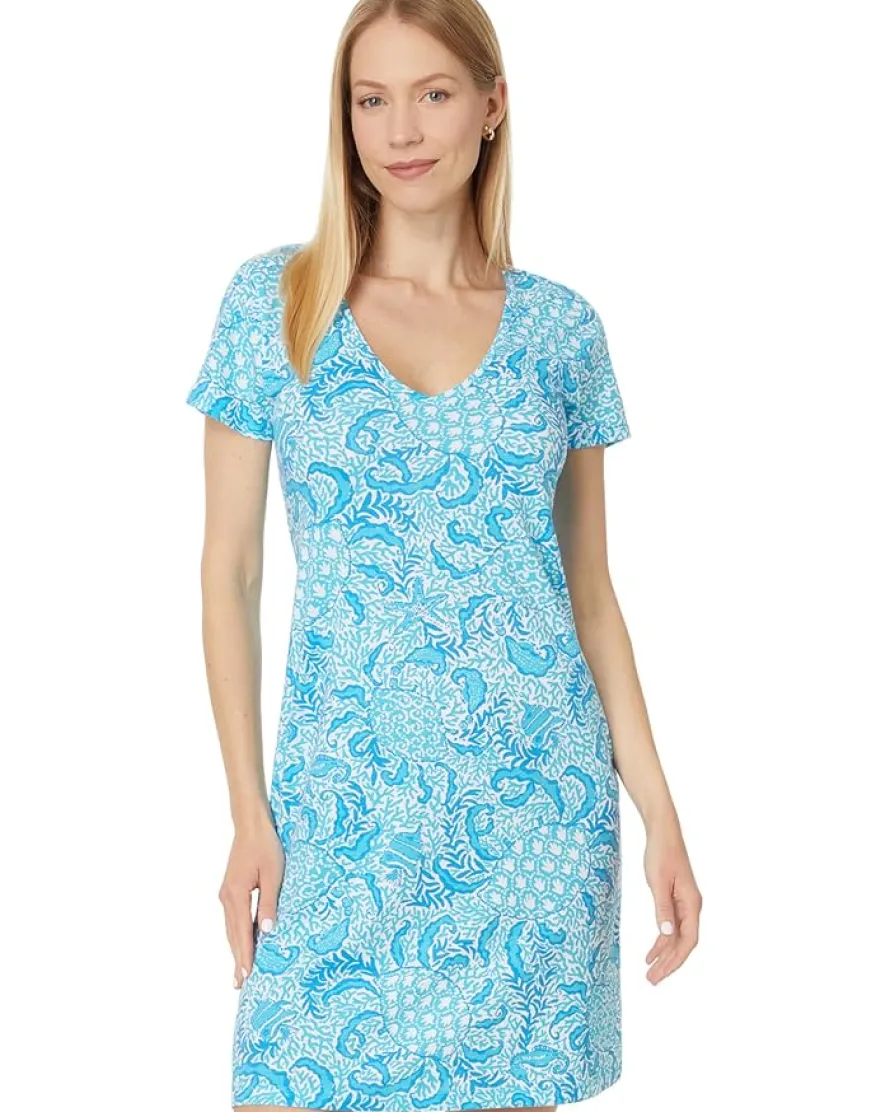 - Classic design, endless possibilities. The Lilly Pulitzer® Etta Short Sleeve Dress. Effortlessly chic, this easy-fit t-shirt dress boasts a flattering V-neckline, short sleeves, and hits just above-the-knee for a flirty vibe. Perfect for day-to-night transitions, its breathable fabric keeps you cool, while its vibrant patterns and colors ensure you stand out in every crowd.