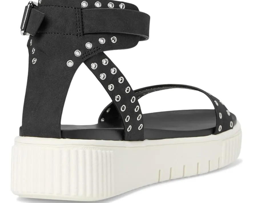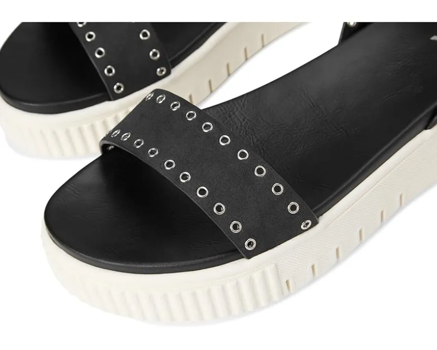 - Designed with an anatomical footbed for cushioned support, the MIA™ Evelin sandals are a great choice to style up your looks and outfits. The faux leather upper features shiny grommets and an ankle strap with an adjustable buckle closure. These platform sandals are made of a faux leather insole and lining, making them comfortable to wear for long hours.