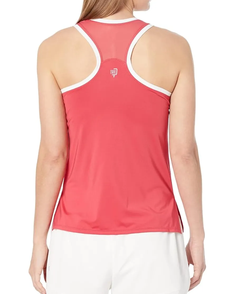 - Add glamor to your game in the stylish Tail Activewear Evelyn Racerback Tennis Tank top. Made with quick-dry moisture-wicking jersey fabric. This crew neck tank has mesh detailing on the neckline for added breathability.
