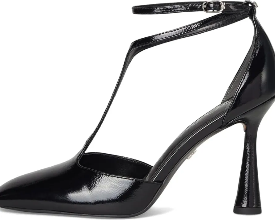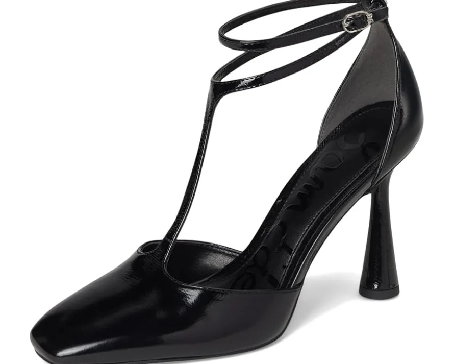 - Raise the glam quotient at the next party wearing the Sam Edelman® Everett Heels. The square-toe heels are crafted with a leather upper, polyurethane lining, and a comfortable faux leather insole. The ankle strap & buckle closure offer easy adjustability and the flare heel elevates the height.