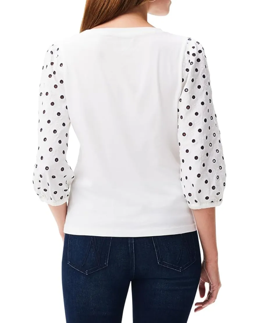 - The simple yet stylish NIC+ZOE™ Eyelet Breeze Top keeps you ready for all your casual weekend looks. The pull-on style top comes in a stretch-knit construction and features a boatneck design, puff elbow sleeves with embroidery, elasticated cuffs, and a straight hem.