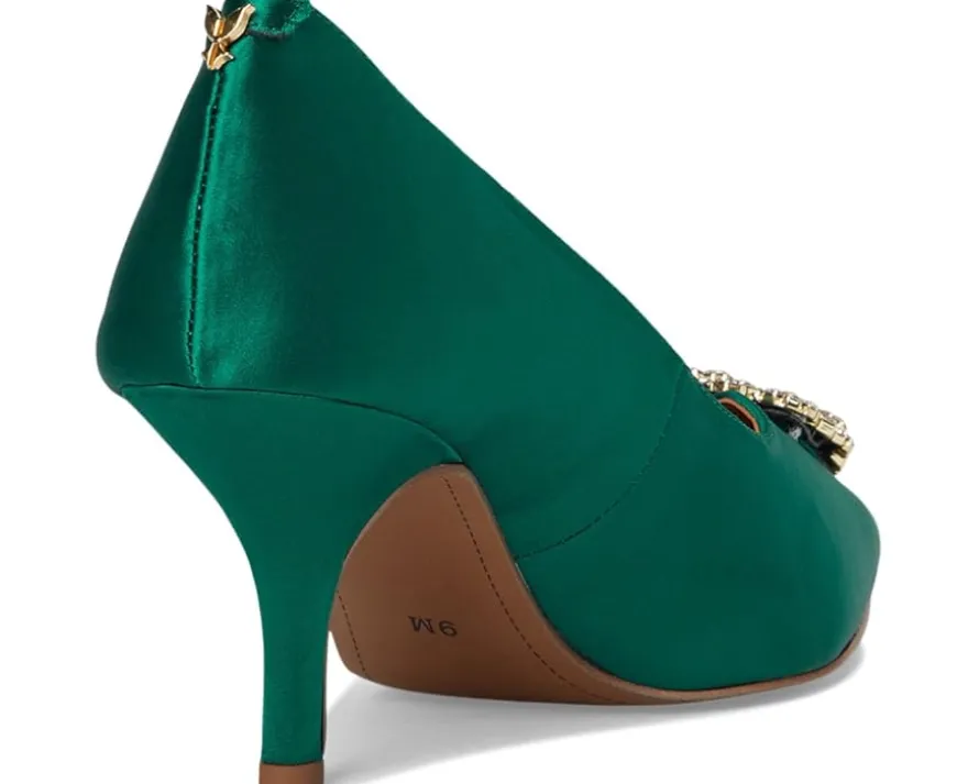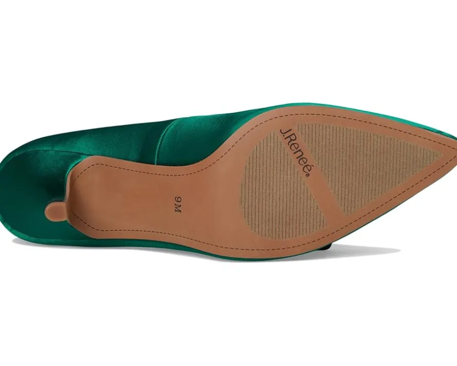 - Revamp your look by complementing outfits with these bold and beautiful J. Renee® Ezara Pumps. This year-round women’s fabric pointy toe pump has a memory foam & latex insole, synthetic lining, and a satin fabric upper. The embellished brooch detail on the vamp and stiletto heel amp up the style game.